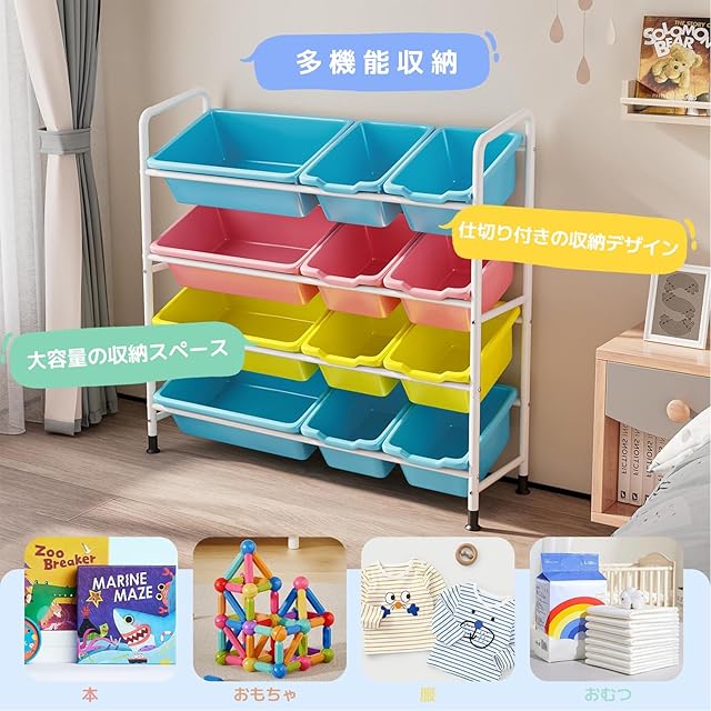 【カラフル】おもちゃ収納ラックにはカラフルな収納ボックスが付属しており、真っ白な収納ボックスよりも子供たちはカラフルな収納ボックスを好むのではないだろうか。 子供たちは自分の好みに合わせて、オーガナイザーの色を合わせたり、並べたりすることができます。ご注意:収納ボックスの色はランダムです。