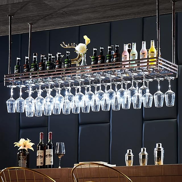KUZRZNH ワイングラスホルダー 吊り下げ 工業用 家の装飾 業務用 ワイングラスハンガー 単層天井ワイングラスラック ワイングラス収納 金属鉄ワイングラス乾燥ラック 防錆 防水 バー キッチン ダイニングルーム用 設置が簡単 調節可能 (色:ブロンズ, サイズ : 120x35CM)