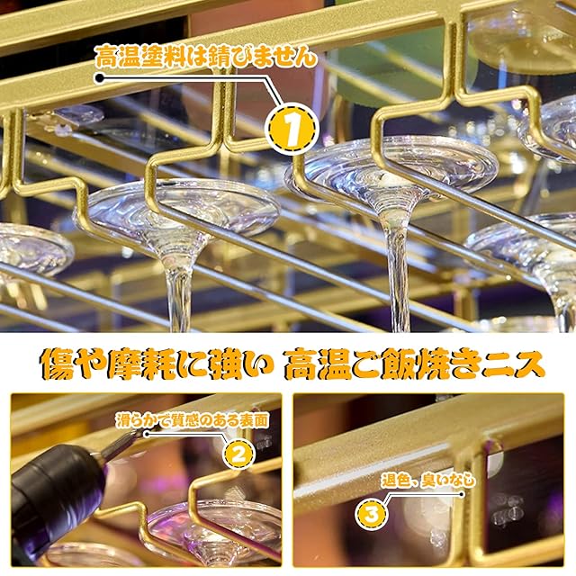 アドバンテージ: 亜鉛メッキ鋼材、スタイリッシュでシンプル、設置が簡単、優れた耐荷重性、創造的な収納、長時間の使用、防水性、錆びにくい、場所を取らない。収納口が広くレール幅が狭いため、大きなものから小さなものまで幅広いサイズのグラスを収納できます