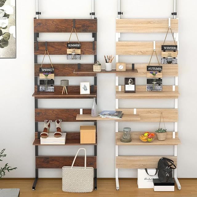 【組立簡単】こちらのラダーラックには、わかりやすい取扱説明書と組立用レンチが付属しており、組立に苦手の方でも簡単に組立できます。つっぱってネジで固定するタイプの設置方法なので、取り付け簡単で壁を傷つけません。独身女性や壁を傷つけたくない方に大変おすすめです。