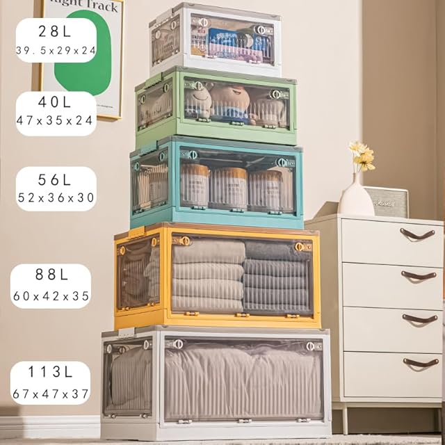 収納ボックス サイズ 39X29X23.5cm、88Lスペースで衣類、書籍、おもちゃ、おもちゃ、食料品、飲み物を箱に入れ、簡単にアクセスできます。ショーケースとしても使える