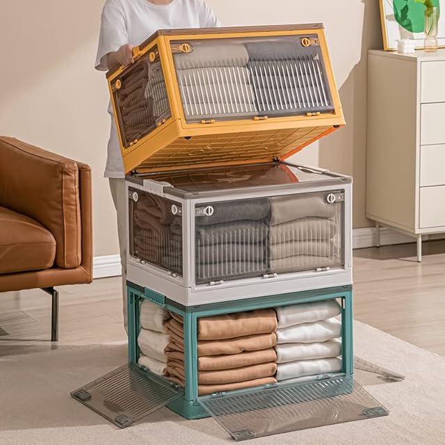 (3個セット)収納ボックス サイズ47X35.3X24.5cm、88Lスペースで衣類、書籍、おもちゃ、おもちゃ、食料品、飲み物を箱に入れ、簡単にアクセスできます。ショーケースとしても使える