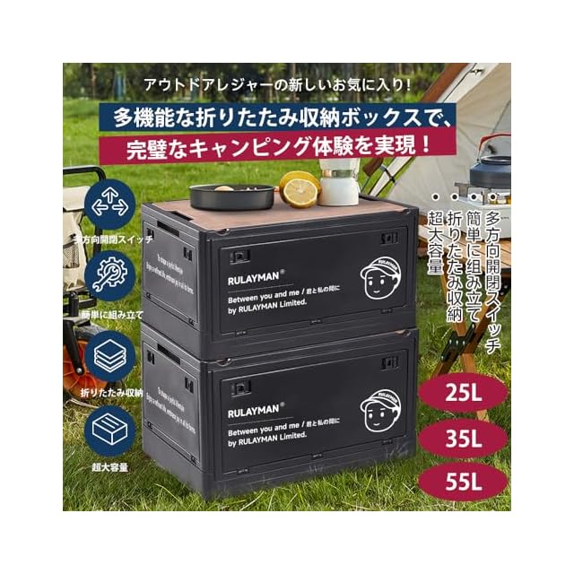 【商品サイズ】:本製品は、3つの異なる容量の折りたたみ式収納ボックスを提供し、それぞれ25L(37.2cm x 26.3cm x 21cm)、35L(44.5cm x 31.5cm x 25cm)、55L(50.6cm x 36cm x 29cm)で、折りたたみ後の厚さはそれぞれ8.5cm、7.5cm、7.8cmです。これらの収納ボックスはスペースを節約し、持ち運びや保管が簡単です。また、ブラック、グリーン、ホワイトの3つの色展開で、お客様の個性やインテリアスタイルにマッチする選択肢を提供しています。