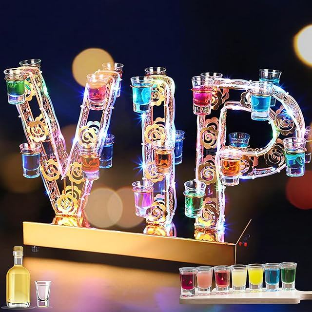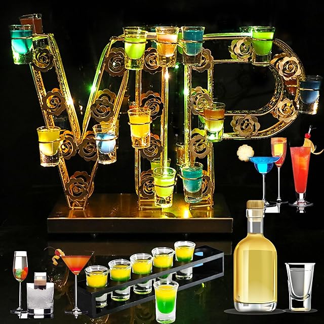 テキーラ観覧車 25ml-24カップ 7色のライト 誕生日パーティー バーホテルLEDワイングラス収納ラック カクテルパーティー KTVナイトクラブに最適 クリスマスの雰囲気 ワイングラス除く (1, vip) (1) | ascend