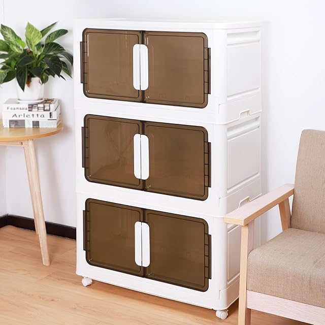 FUNHOO 【3段ボックス 110L大容量】収納ボックス 折り畳み 蓋付き 衣装ケース 収納ケース 大型収納ボックス 中身が見える 収納箱 キャスター付き 衣類 おもちゃ箱 ストック用品 日用品の収納 XLサイズ幅70*奥行40*高さ114cm
