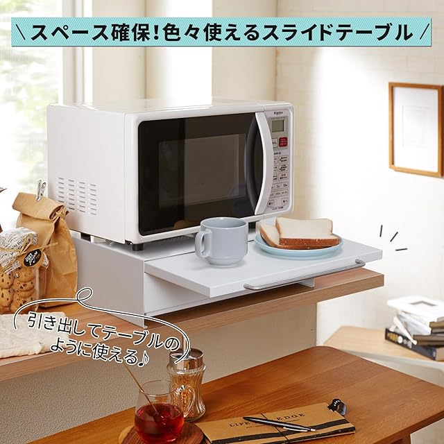 Tydle 【レンジ下スライドテーブル+引き出し】 キッチン家電下引き出し キッチンラック 2段 レンジ台 レンジラック 約横45×奥行37×高さ13.5cm キッチン収納 レンジ下収納 トースター台 マグネット 小物収納 静音 天板耐荷重17kg すっきり整頓 完成品 取っ手のみ要取付 | ascend