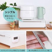 ⭐【賢く使う3つのポイント】①レンジラックの側に磁石を取り付けることができるので、お手持ちのマグネットでメモを貼ったり、キッチンタイマーやフックなどをつけられます。②取っ手はサビに強いステンレス製です。アクセスにもなります。③本体は熱や水に強いスチール製、触っても指紋跡が付かなく、粉体塗装により傷がつきにくく、汚れにくいのが特徴です。