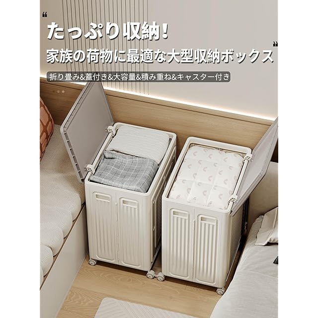 X XUNTAO 収納ボックス 折り畳み 蓋付き 収納ケース 衣装ケース 洗濯かご 隙間収納 スポーツ用品収納 持ち手付き 360度回転キャスター 大容量 多機能 強い耐荷重 組立簡単 防塵 防湿 積み重ね可能 70L 幅57.5*奥行24.5*高さ67.5cm | ascend