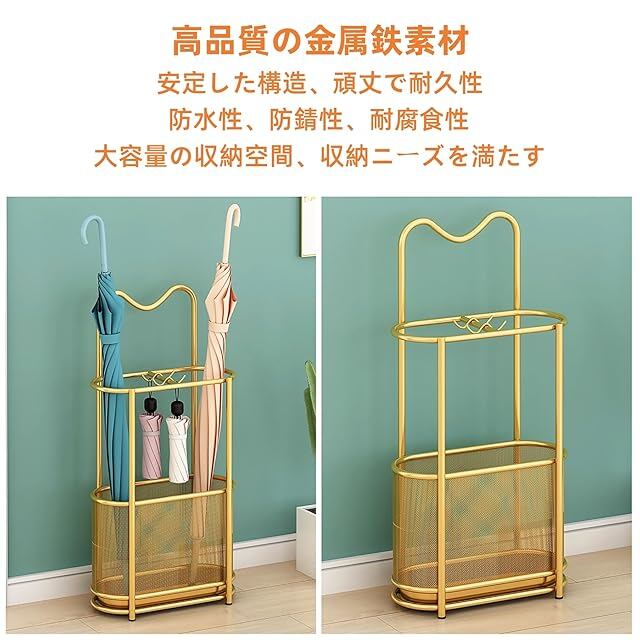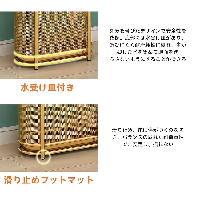 傘立て 傘収納ラック 金属製傘立て オフィス用傘立て 長傘折り畳み傘収納 多機能傘収納 玄関用傘ホルダー 大容量 防錆 防水 耐久性 水受け皿付き 玄関収納 業務用 家庭用 傘ホルダー (ゴールド) | ascend