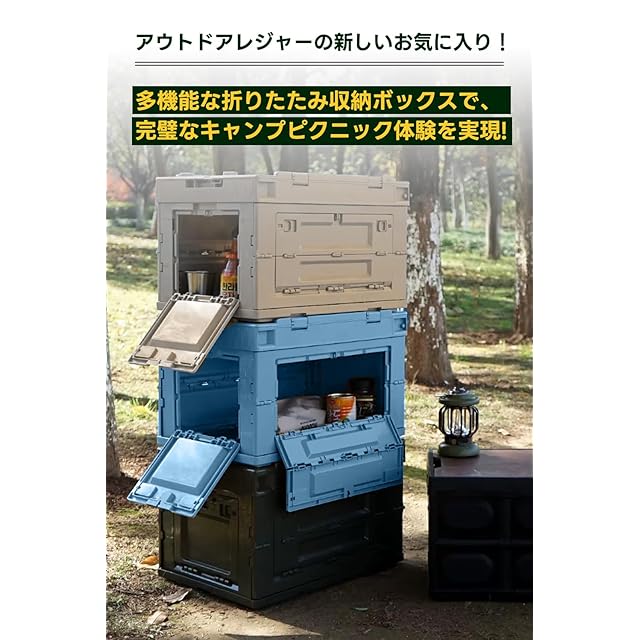 【全方向から取り出せる】収納箱界の大革新!使わない時に折りたたんで収納できます、スペースを取りません。側面四面も扉付き、収納にとても便利です。上にふた付き、物を入れやすい、蓋をロックできます。物を取るは側面扉から、ボックスを積み重ねる状態にも楽に物を取り出して、伝統的な収納ボックスに比べてもっと便利で、機能性が向上します。