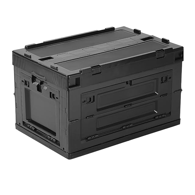 RULAYMAN 折りたたみ 収納ボックス 65L 工業スタイル 防カビ防湿 プラスチック製 積み重ね可能 大容量 耐荷重30kg シンプルデザイン 家庭用 車用 アウトドア 衣類布団収納 簡単組立 (ブラック) | ascend