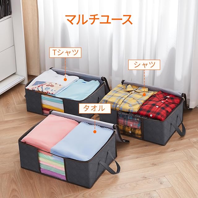 Lifewit 衣類収納袋、折りたたみ式収納ケース、クローゼットオーガナイザー、布団収納袋、洋服収納、補強ハンドル、丈夫な生地、透明窓付、セーター、コート、Tシャツ、毛布用、4個入り, グレー | ascend