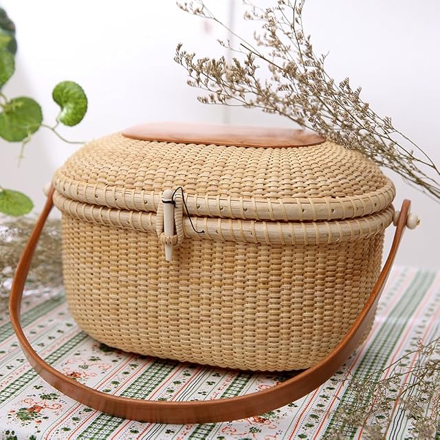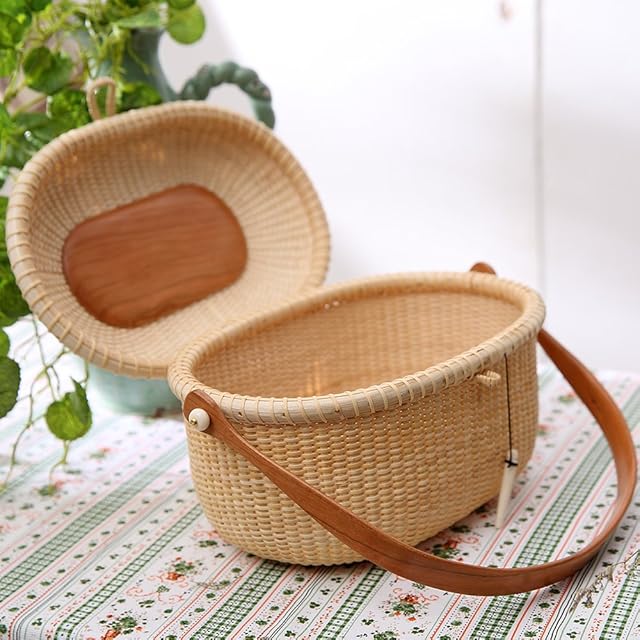 Teng Tian ナンタケットバスケかごバッグ 蓋付きレディースバッグ・財布 バッグ カゴバッグ ートバッグ 人気 手提げ ヴィンテージ 手編みで籐製の袋 ハンドバッグ 内布付 籠バッグ | ascend