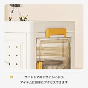 【半透明で目隠ししつつ見やすい】扉が半透明なので中身丸見えということでもなくうっすら中身を確認できるので何をいれたかの確認もしやすいです。半透明なグレー本体に上下白でまとめ、自宅のインテリアと同じようなトーンの柄を合わせているようで、インテリアの一部になれます。