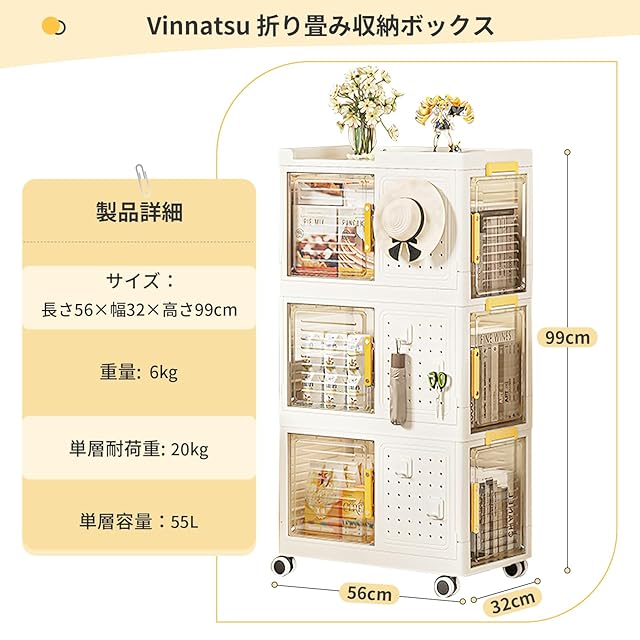 Vinnatsu 収納ボックス 折りたたみ蓋付き 衣類収納おしいれ 収納折りたたみコンテナ 積み重ね 透明収納ケース 折り畳み 衣類 布団 小物 収納 コンテナ ボックス 折り畳み プラスチック キャスター おしゃれ 多機能 防塵 防カビ 防湿 透明 前開き無臭 厚み 強い耐荷重 大容量 玄関/リビングルーム/寝室/書室(3段式) | ascend