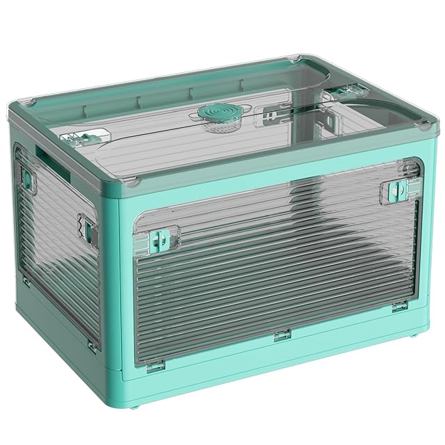 X XUNTAO【収納ボックス 折りたたみ】蓋付き 積み重ね 全方向から取り出せる 収納ケース 衣類 布団 小物 収納 折り畳み コンテナ ボックス 大型 プラスチック キャスター付き おしゃれ 組立簡単 防塵 防カビ 防湿 無臭 透明 厚み 強い耐荷重 大容量 家庭用 車用 複数のサイズ 各種カラー(L,51.5cm*36cm*30cm,55.6L)