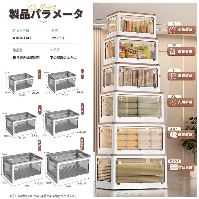 【スペースを省けて▪丈夫耐用】実用性も強いです。このコンテナボックスを折りたたんで収納できます。キャビネットや衣装だんすの中に入れたり、折りたたんでキャビネットや衣装だんす、靴箱として利用できます。本体は高品質なPPを採用し、高い靭性、耐磨耗・引き裂きに強く、より強い荷重能力があります。使用するときは何個のボックスを積み重ねて形を変えられません。