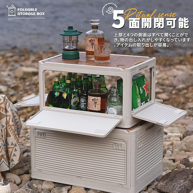 【全方向から取り出せる】収納箱界の大革新!使わない時に折りたたんで収納できます、スペースを取りません。側面四面も扉付き、収納にとても便利です。上にふた付き、物を入れやすい、蓋をロックできます。物を取るは側面扉から、ボックスを積み重ねる状態にも楽に物を取り出して、伝統的な収納ボックスに比べてもっと便利で、機能性が向上します。