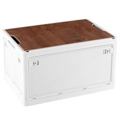 収納ケース 木製の蓋付き 全方向から取り出せる 積み重ね キャスター付き アウトドア 折りたたみコンテナ ボックス 大型 キャンプ コンテナボックス 組立簡単 多機能 厚み 強い耐荷重 大容量 家庭用 オフィス用 車用 寝室 衣装ケース おしゃれ