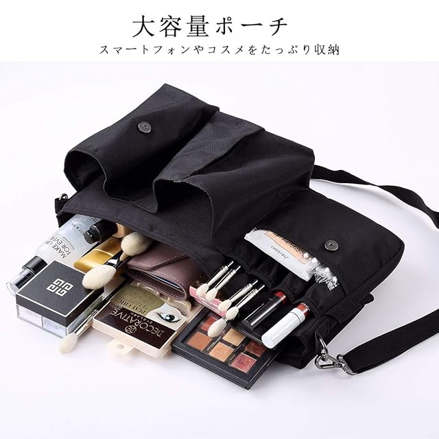 大容量スタジオバッグ、大きめのポケットは外出メイクの仕事に必要なメイク道具やコスメ、スマートフォン、財布などをたっぷり収納できます