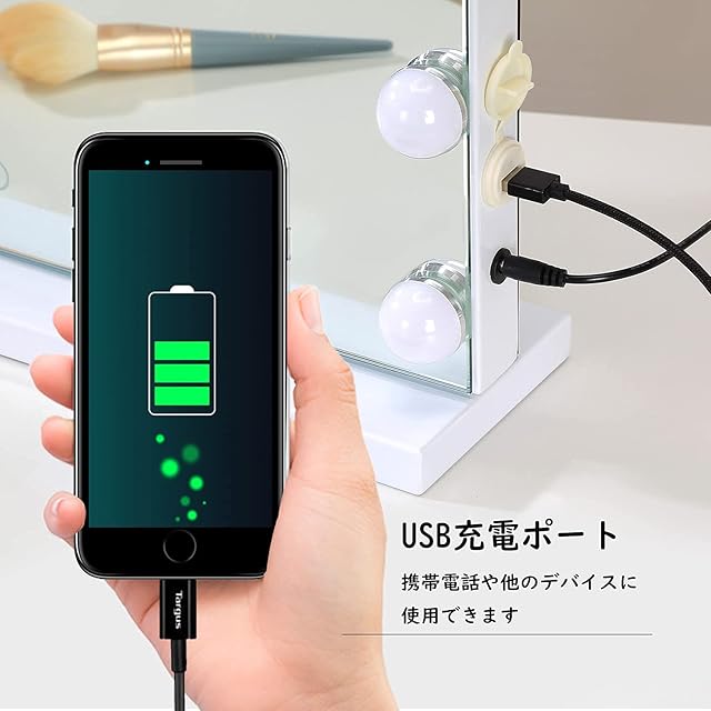 Nusvan 女優ミラー ハリウッド女優鏡 化粧ライト鏡 14個LED電球付き化粧鏡 壁掛け/卓上両用ミラー 三色照明モード 明るさ調節可能 10倍拡大鏡&USBポート付き ホワイト… | ascend