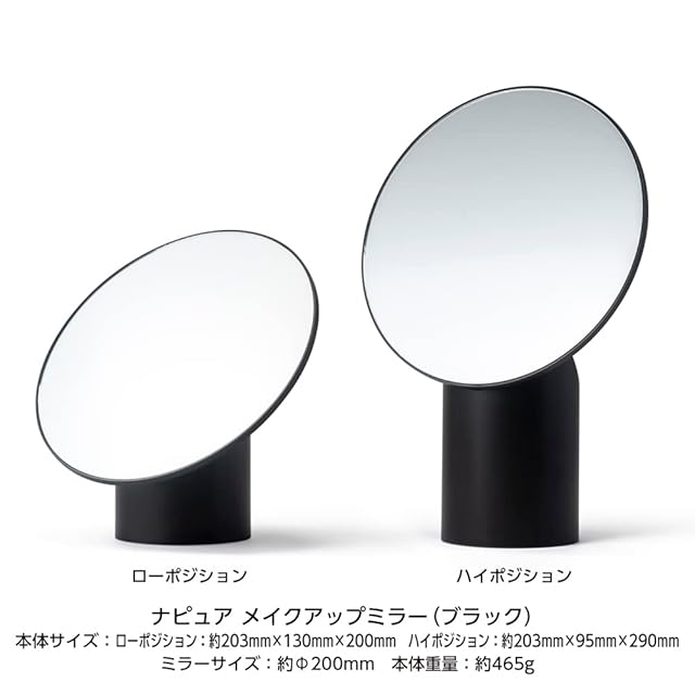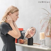 【髪からデコルテまでを映せるサイズ】卓上ミラーの鏡サイズとしては大きめのφ200mm を採用。メイクも髪も全体のスタイリングが可能です。またスタイリッシュなフォルム、洗練されたデザイン、インテリアとしても効果を発揮してお部屋にアクセントをつけてくれます。
