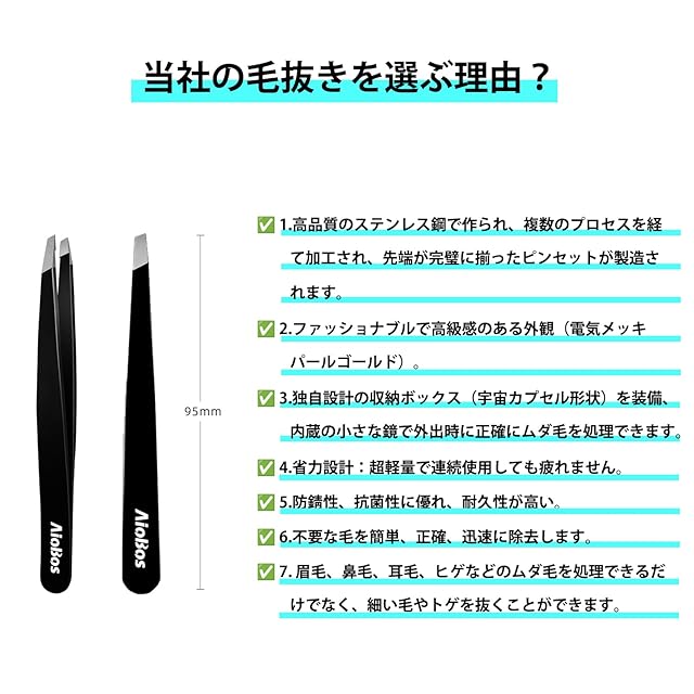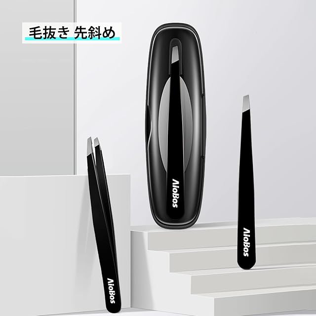 AioBos がっちりキャッチ 毛抜き 先斜め ピンセット オシャレ 贅沢さ 毛抜き 精密 ひげ抜き とげ抜き 男女兼用 不要な毛を簡単かつ正確に除去します 鏡付き宇宙カプセル収納ボックス(ブラック) | ascend
