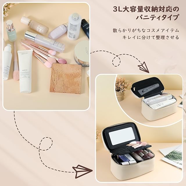 「様々なシーンにマッチさせる」高級感をプラスさせる落ち着いた無地ワントーンのベージュホワイト色のスッキリとしたデザインより、様々なシーンにマッチできて、年齢を問わずに使えるため、自分用はもちろん、メイク好きの家族や親友にちょっとしたプレゼントとしても大変おすすめです。