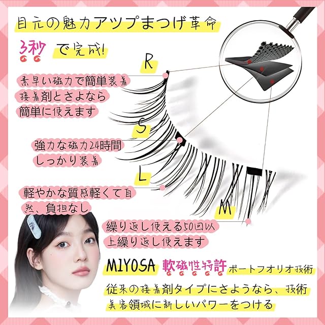 ✨【独自のR-SLM技術】:従来の接着剤タイプを歴史に、つけまつげの新革命!独自の特許技術R-SLMを以て、効率と美しさの完璧な組み合わせを実現しました。再構成-柔らかい-ふんわり-磁力により、様々な眼形に適合する快適な装着体験を提供します。当社の磁気つけまつげはメイクアップ体験の向上を目指しています、ナチュラルメイクにもぴったりな「薄付け効果」が特徴的な磁気マスカラです。