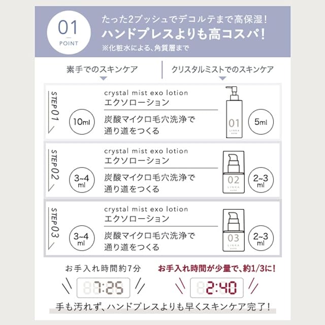 ?【潤うツヤ肌、ご自宅て上質なセルフエステ体験を。】LINKA (リンカ) クリスタルミストは、乾燥肌、混合肌、ゆらぎ肌が気になる‥そんなあなたのために、スキンケアの概念が変わる3分の極上セルフエステを体感ください。