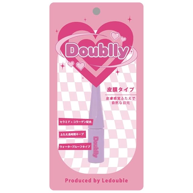 二重まぶた形成化粧品「ルドゥーブル」から新シリーズ「ダブリー」登場!<br> 「引締り・保湿力・速乾性」がパワーアップして、より使いやすさにこだわりました。<br> 塗布したリキッドが特殊な人工皮膜に変化し、まぶたをギュッと折り込みきれいな二重に。<br> 人工皮膜は無色透明・テカリにくい・白浮きしにくく・まぶたにピッタリ密着します。<br> 使っているのがわからないほど自然でキレイ。<br> ウォータープルーフタイプなので長時間キープ。<br> うるおい成分セラミド・コラーゲンW配合。<br> 毎日のメイクに、ダブリーは塗って乾かすだけで目元の印象が変わるので、<br> 簡単にお使いいただけて、アイシャドウの発色・ラメ感もキープされメイクも楽しめちゃう!<br> 年齢、性別にへだたりなく、美しい目元を演出します。<br> 一重・奥二重の方はぱっちり二重に。<br> 二重の方は幅広二重に。<br> 年齢を重ねた大人のまぶたもスッキリ二重に。<br> 塗り方ひとつで、色々な目の形の方々にご使用いただけます。<br>