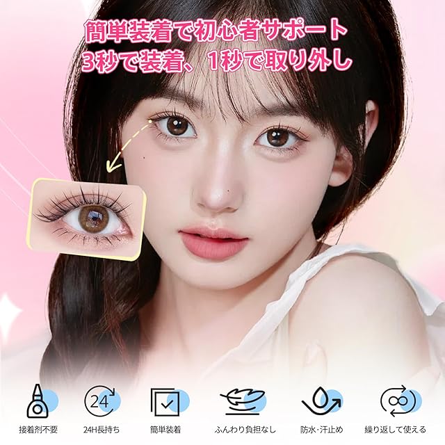 【再利用可能&刺激なしで快適】マグネット式つけまつげは、軽量で抗菌性のある清潔な素材を使用しています。接着剤なしで、まつげを自然に引き立て、快適に装着できます。何度でも使えるので経済的で、毎日の美しさを維持しながらも、刺激のない快適な装着感を提供します。従来のつけまつげの煩わしさを解消し、手軽に美しい目元を楽しむことができます。