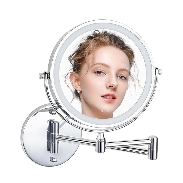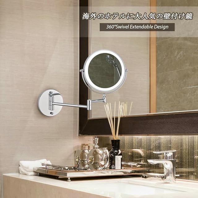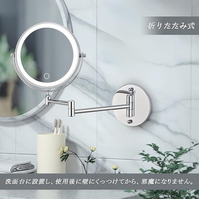 Cerdeco 真実の両面鏡DX LEDライト付き 洋式アームミラー 両面化粧鏡 USB充電式 タッチパネル操作 等倍鏡&5倍拡大鏡 明るさ調節可能 三色ライト LEDライティングミラー 伸縮可能 壁付けミラー メイクアップ 化粧道具 折りたたみホテルミラー 洗面所に取り付け クロムめっき-银色 鏡面φ175mm D749 | ascend