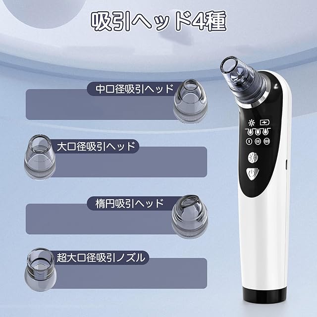 毛穴吸引器 3段階レベル 4種類ヘッド 温熱ヘッド USB充電式 LCD液晶画面 コンパクト 軽量 男女兼用 プレゼント 日本語取扱説明書付き