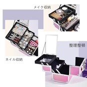 【機能美・大容量】鏡と鍵付きで、ドレッサーより機能性、収納抜群のメイクボックスです。粧水・乳液・下地・ファンデ・アイシャドウ類の他筆数本・ブラシ、ネイル用品など、増えていくコスメをきれいに使いやすく収納できます。2、3日泊用のメイク道具は収納余裕があるので、旅行と出張時の化粧品収納ボックスとしても大活躍!