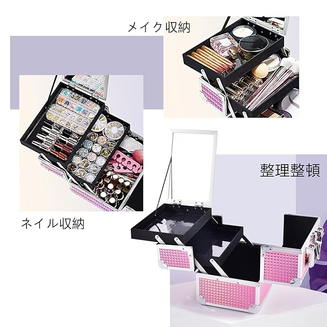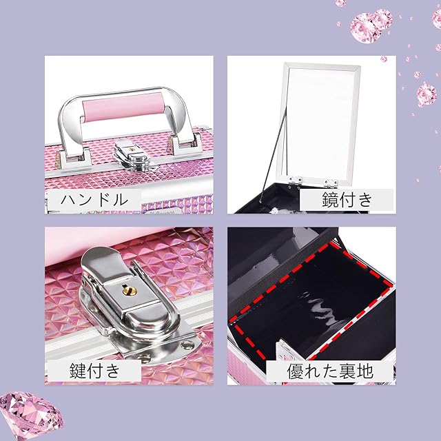 Hapilife メイクボックス 鏡付き コスメボックス プロ用 化粧箱 化粧ボックス 化粧品収納ボックス 大容量 ネイル収納 メイク道具 鍵付きボックス クリスマスプレゼント(ピンク) | ascend