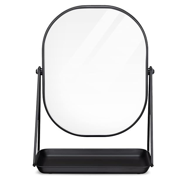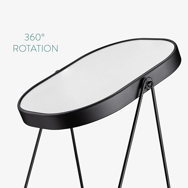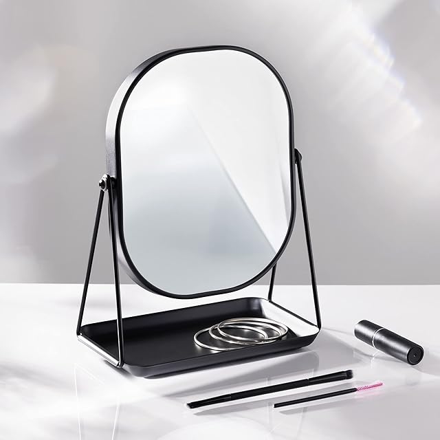 おしゃれで賢い: 北欧風のおしゃれなミニ鏡は、360度角度調節を行うことができるため、見やすい角度に合わせてお使い頂けます。また、アクセサリー収納トレイ部分は重みがあり、裏面にはシリコン製ベースが施されているので、お好みの場所にしっかり設置し、大切なテーブルを傷つけません。