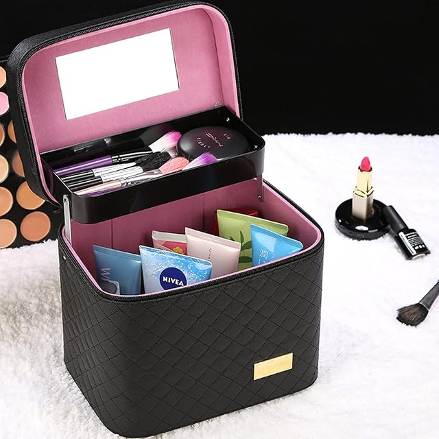 [IBUKI-STYLE] メイクボックス コスメボックス 持ち運び 収納 大容量 化粧 鏡付き 旅行 韓国 ポーチ バッグ 小物入れ コスメ収納 おしゃれ 可愛い 鏡付き 人気 ガラス キャリー キッズ キャラクター キャリーケース キャスター キラキラ キャスター付き 組立不要 大容量 化粧品ケース メイク収納 ボックス 蓋付き 軽量 (ピンク) | ascend