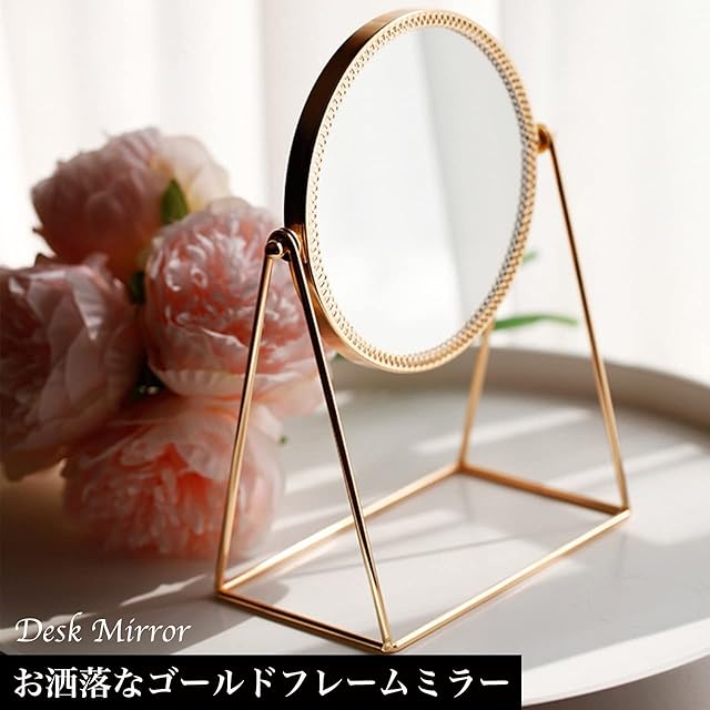 お洒落で可愛い丸形の化粧ミラーです。高級感溢れるゴールドフレームでインテリアとしてもおすすめです。360°回転するので実用性も抜群!美しいデザインで、女性の誕生日や記念日などのプレゼントにもとても喜ばれるアイテムです。