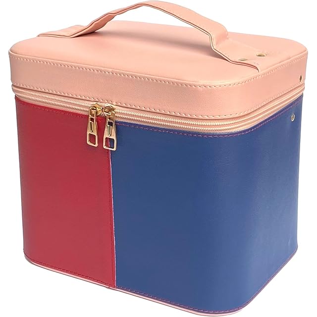 【Pearpark】 メイクボックス 3カラー 鏡付き コスメボックス 大容量 持ち運び お洒落 かわいい メイク収納 コスメ収納 化粧品収納ボックス プロ用 綺麗 ミラー 収納ケース 上品 カラーリング (レッド/ネイビー) | ascend