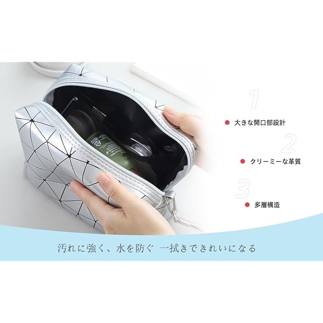 【防水・無臭素材】化粧品やスキンケア用品を保管するには、防水性と無臭性が重要です。このメイクアップポーチは、高品質な防水・無臭素材で作られており、中に入れたアイテムをしっかりと保護します。