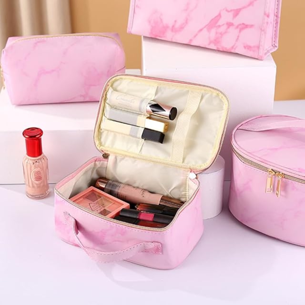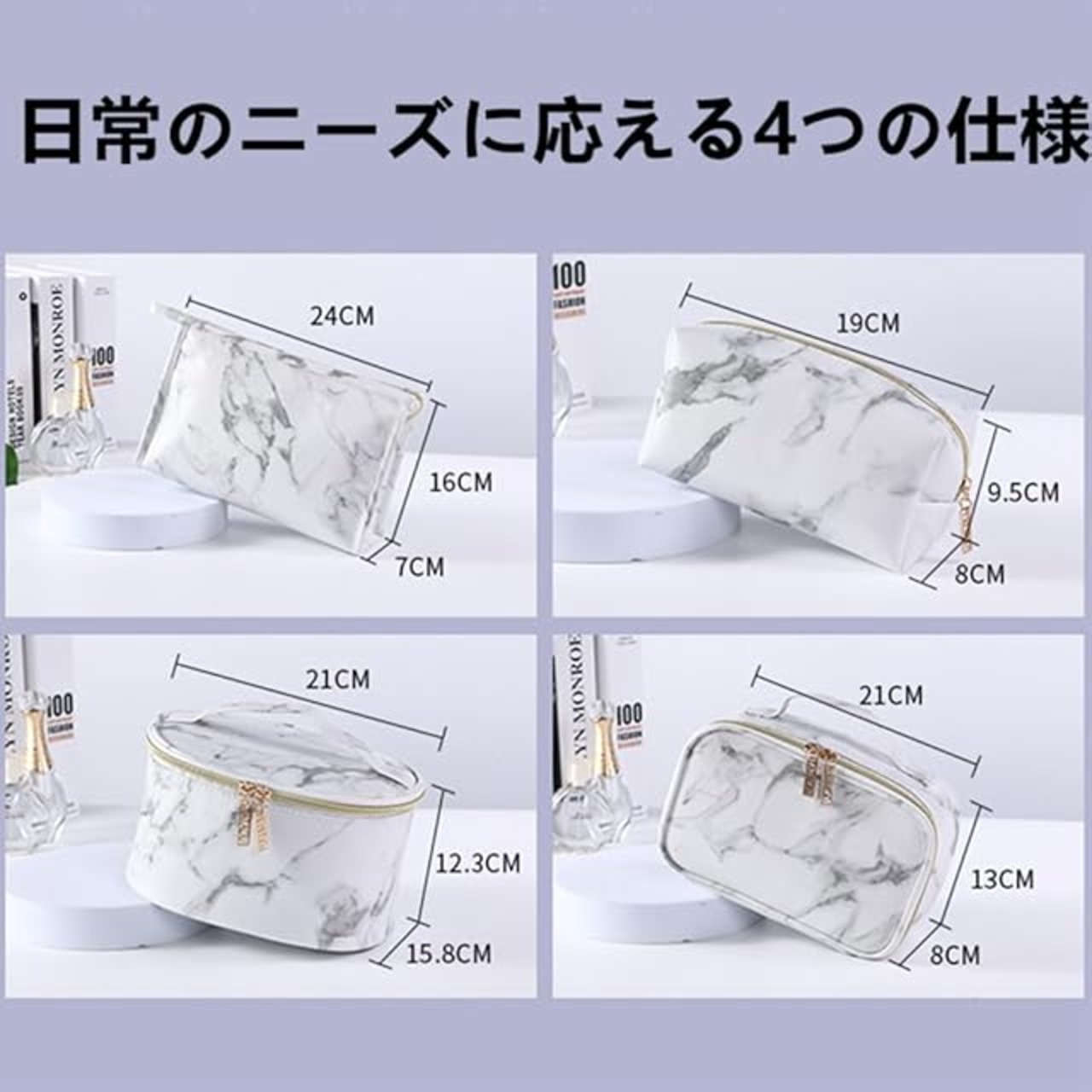 【4点セット】4点化粧品バッグセットには、通常、メインの化粧品バッグといくつかのアクセサリーバッグが含まれています。整理整頓や携帯性など様々な面を考慮し、メイクアップユーザーの日常生活において実用的で多機能なアクセサリーとなっております。特別な質感が化粧ポーチにファッション感を加えます。