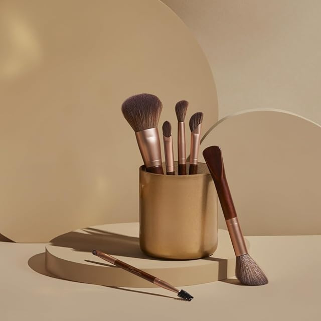【MilleFée】かわいいを描くこだわりの魔法。6本セットで基本メイクはこのワンセットで完成。 1、パウダーブラシ 2、マルチフェイスブラシ 3、コントゥアブラシ 4、ブレンディングブラシ 5、アイシャドウブラシ 6、アイブロウブラシ