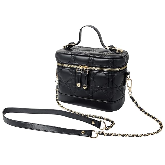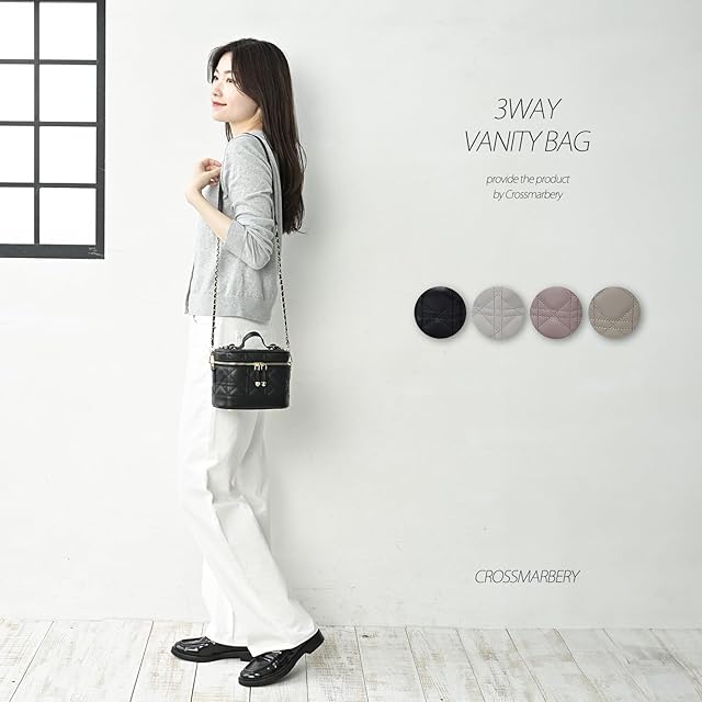 [クロスマーベリー] バニティバッグ ショルダー キルティング ショルダーバッグ おしゃれ 黒 コスメ メイク バッグ 化粧ポーチ チェーン 軽量 持ち運び 3Way 自立 コスメバッグ 可愛い 化粧道具 プレゼント R55 ブラック | ascend