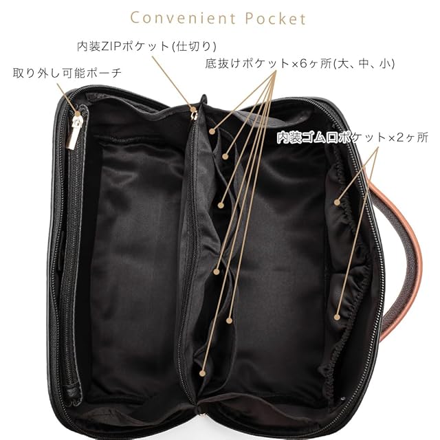 内装ゴム口ポケット×2ヶ所<br> 底抜けポケット×6ヶ所