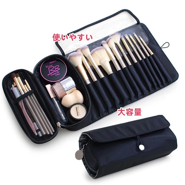 Aylashine メイクブラシバッグ 旅行用メイクブラシケース メイクブラシホルダーオーガナイザー コスメバッグ ポータブルロールアップブラシ収納バッグ メイクブラシとコスメ メイクアップバッグ メイクブラシバッグ 収納バッグ 多機能 折りたたみ式 プロ仕様 美容メイクアップツールバッグ (ブラック) | ascend