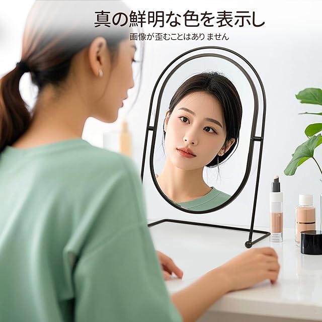 【HD鏡面卓上ミラー】HD鏡面の卓上ミラーで、満足感を与える超大きな鏡面です。スキンケアやニキビの処理など、細かい作業がしやすく、肌の隅々までチェックできます。日常的に化粧をする女性にとって非常に便利で、可愛らしくお洒落な見た目も魅力的です。