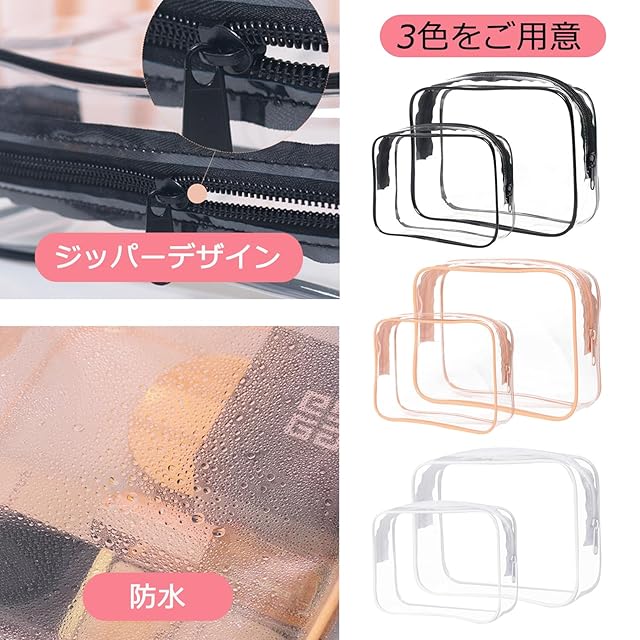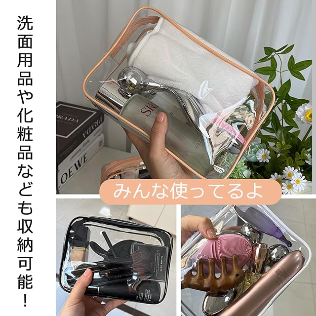 【マルチサイズの組み合わせ】セットには透明収納バッグが4つ含まれており、小さいサイズが2つ、大きいサイズが2つあります。小さいサイズは19*14*5.5CM、大きいサイズは24.5*16.5*8CMで、さまざまなサイズのアイテムの保管ニーズに完璧に応えます。この収納バッグは化粧品、文房具、電子製品の付属品を収納でき、トイレタリーバッグとしても使用できます。