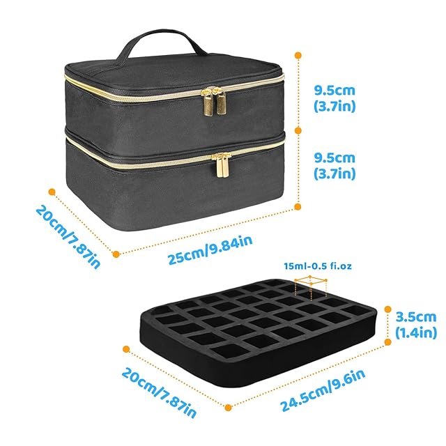 【取り外し可能な仕切り設計】ネイル収納ボックスの下層には取り外し可能な変形しないスポンジ仕切りが装備されており、衝撃を軽減し、マニキュアの安全性を確保します。取り外し可能な仕切りは、マニキュア、ネイルドリルキット、その他のネイルアクセサリーを整理して保管できるように設計されています。ネイルボックスはネイル用品だけでなく、化粧品バッグやトイレタリーバッグとしても使用できます