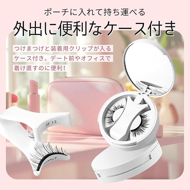 【自宅でサロン級まつげ】 ・自然で魅力的な仕上がり 自然なカールや長さが特徴で、自分のまつげに馴染みやすく、ナチュラルからボリュームアップまで好みのスタイルが楽しめます。 ・快適な装着感 柔らかく軽い素材を使用しているため、目元への負担が少なく、一日中快適に過ごせます。 ・取り外しも簡単&負担ゼロ 磁力で固定されているため、取り外しもスムーズで、自分のまつげを傷める心配がありません。 旅行や外出先でも便利 持ち運び可能な専用ケース付きで、どこでも簡単に取り付けや取り外しができます。